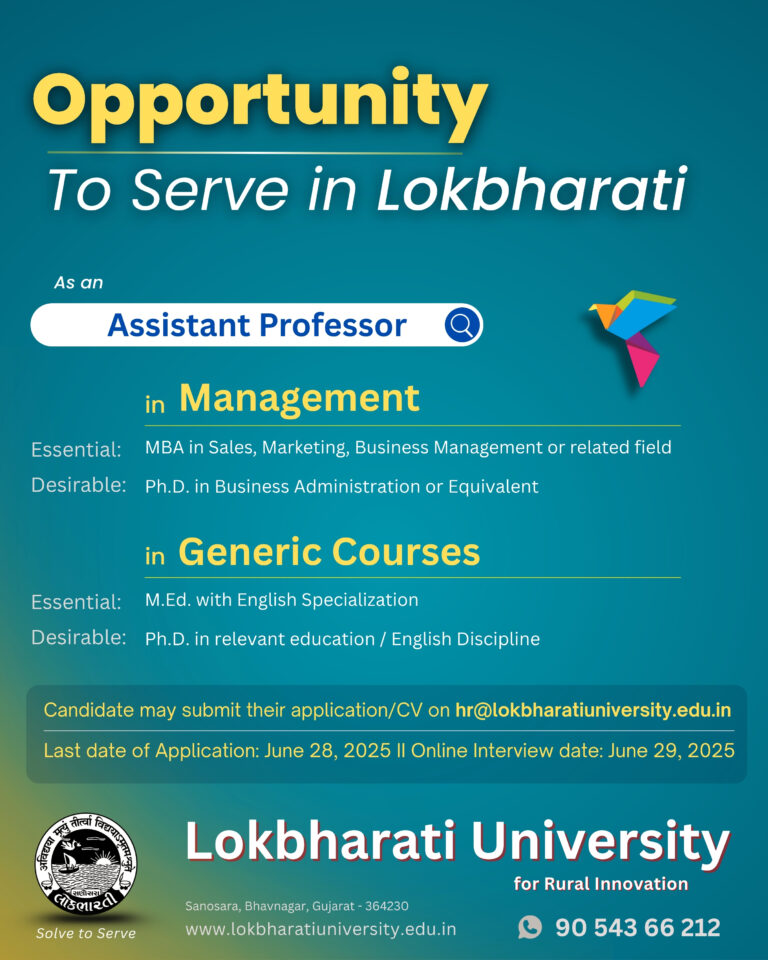 Interested candidate may submit their application on hr@lokbharatiuniversity.edu.in