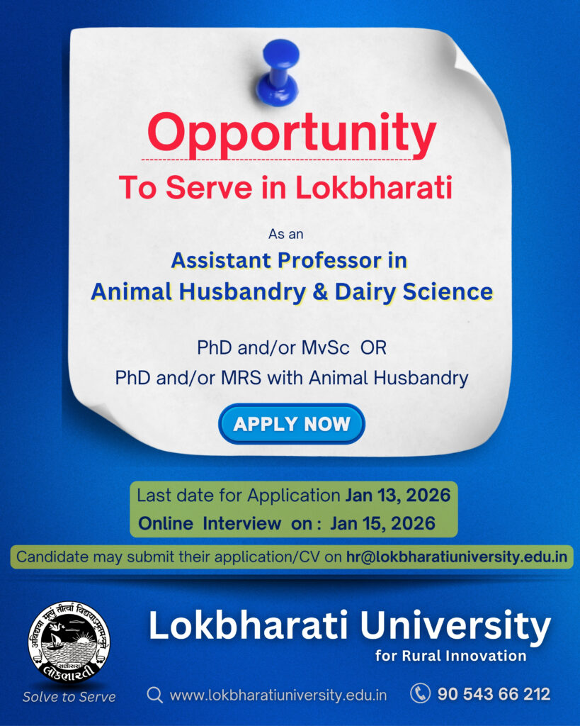 Lokbharti University for Rural Innovation has created a magnetic field to attract people with passion, compassion and aspiration for quality. If you have such traits, my dear friend, you are most welcome to join the team.